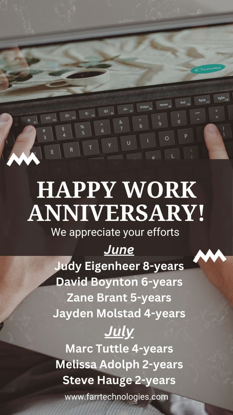 Oh we like making these posts...it's always so much fun to celebrate work anniversary milestone! Please give a shout out to these two FARR employees! #workfun #telecommunicationsjobs #WorkHardPlayHard #CelebratingTheYears